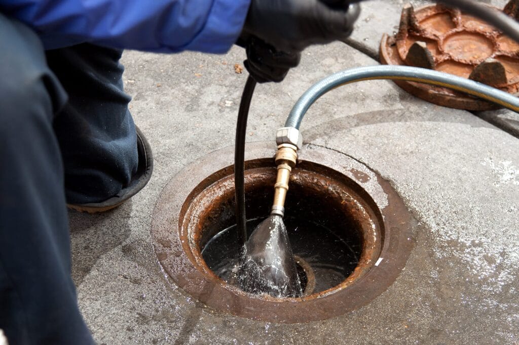 We use cameras and hydro jetting to clear the line completely and restore normal flow.